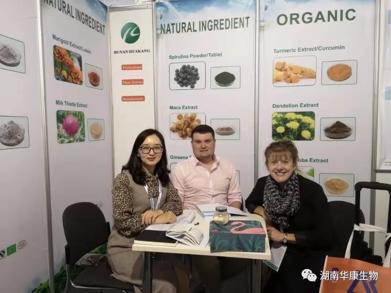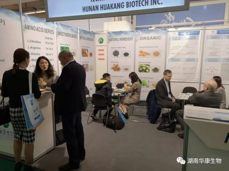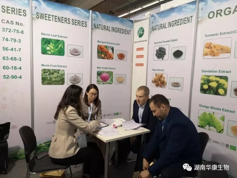 作为一家专注从事天然植物提取20年的专业公司来说,在展会上一直都是被关注的热点。展会期间,落座华康展位的宾客络绎不绝,深入浅出的探讨各个产品。